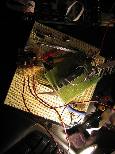 An arduino based system for controlling a set of Ikea Trettio lights. These lights use tamiya style connectors, and take 12v power. Power is routed from a small computer power supply to the lights, with levels controlled through MOSFETs via PWM signals from the arduino. Programs on other devices can then access the arduino via the network to set light levels.