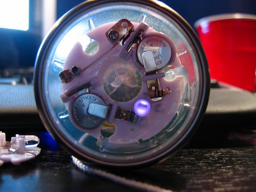 Yoyo tracking via Wiimote IR Camera. An LED board is mounted in a yoyo, lighting up whenever the yoyo is spinning. Instead of using the normal colored LED, an IR LED is used. Due to the high update rate and resolution of the Wiimote IR camera, the yoyo can be tracked in real time as tricks are done with it, something not easily possible with regular computer vision and RGB cameras.